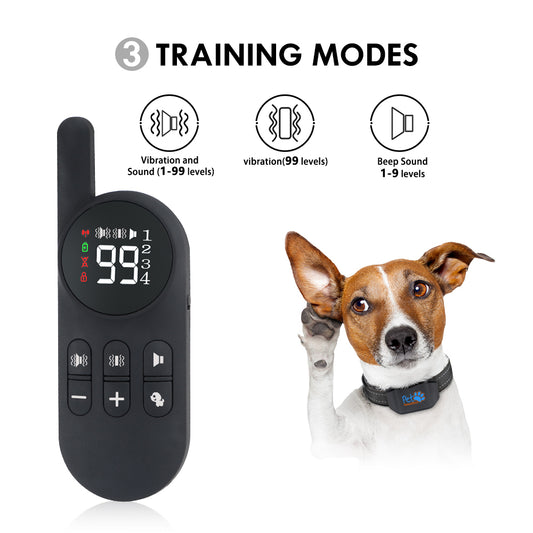 No Shock Humane Rechargeable Water Resistant Remote Control Collar, Sound & Vibration Only, For 8-120lb dogs, Neck size 7in to 25in